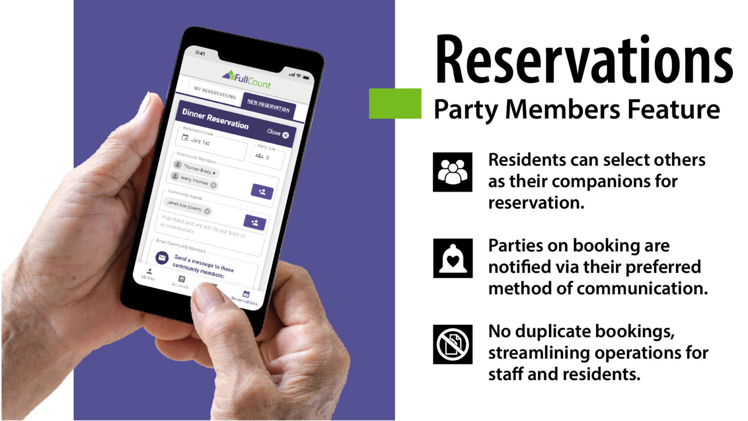 With FullCount's exclusive party member selection, residents have an added level of convenience and organization to the reservation process.